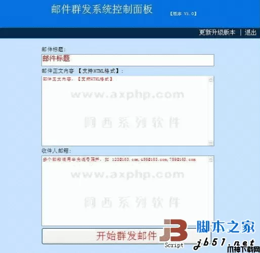 阿西在线邮件群发系统php版 v1.0 ,阿西在线邮件群发系统成功率可达到100%,程序开发完,我就立即测试了发送3688个邮件,结果成功率达到100%,并且不会进入垃圾箱!