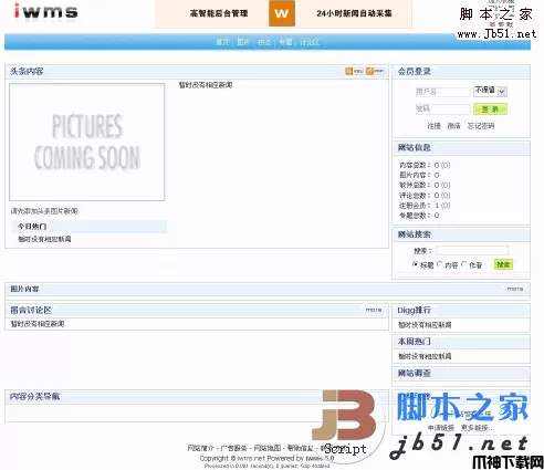 iwms5.1版只支持asp.net2.x/3.x,旧版asp.net1.x环境的用户请选升级IIS中网站环境为asp.net2.x才可升级。 具体升级方法请看在线帮助中心 iwms5.1更新内容如下: 大幅减少生成静态时资源占用 生成静态队列可在重启IIS后继续运行 新闻静态位置可选择分类下还是系统静态目录 已审核内容可转换为待审状态 讨论区添加审核功能,发帖可上传图片 改进风格导入导出功能,导出为单一打包文件 添加模板导入导出功能 修正界面风格中设计菜单出错 新闻管理员有“可管理自己添加的新闻”权限后可删除自己的新闻 修正添加下级分类后上级页面中下级分类栏目清空 修正chrome下图片放大时没跟随滚动位置 修正删除帖子有三级以上回帖时帖子总数错误 系统设置中可设置网页标题处分页字符 添加wap sitemap生成 采集规则可设置自动生成简介 首页头条简介设置移至新闻添加页 新的添加新闻分类选择方式,分类过多时性能优化 添加显示相关图片新闻函数RelateImgNews 讨论区和评论过滤词可设置过滤词的替换词 可设置rss输出全文 延迟加载分类菜单脚本,减少服务器连接数 生成静态按firefox标准,ie标准会在其它浏览器中显示错误 sp2版更新内容 修正部分内容ajax提交加号变为空格 tinymce更新到3.3.6 rss订阅分类时包含子类内容 修正不规范的html 采集功能可更好的识别分页标题 限制会员评论时非会员不可提交评论 修正导入非gb2312编码采集规则出错