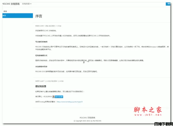 PESCMS DOC开源文档管理系统 v2.1.9,PESCMS DOC是一款基于PESCMS2.5开发的文档系统:管理文档原来可以做到如此便捷,本程序基于GPLV2协议进行开源发布。欢迎下载使用