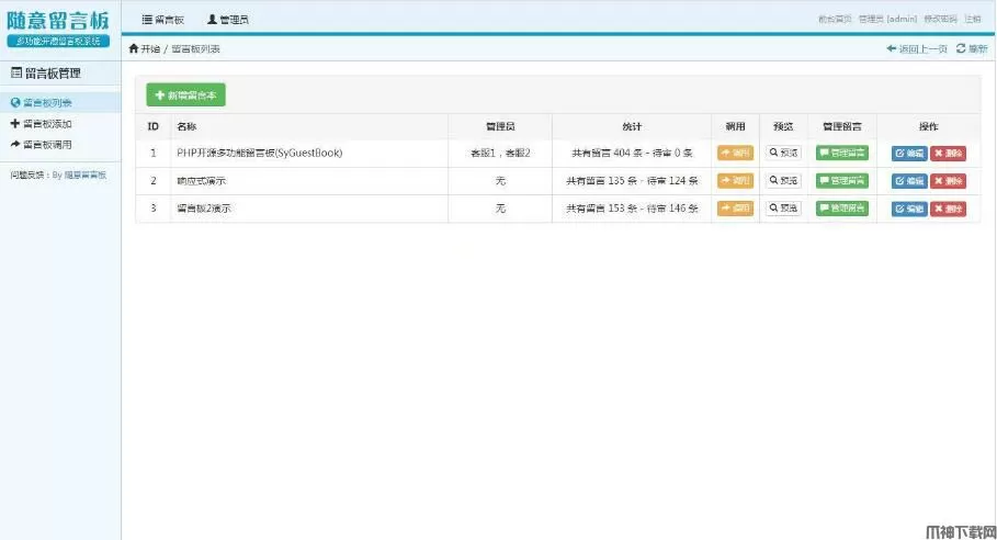 2、可创建多个留言板;每个留言板都能设置不同的模板;每个留言板都能设置单独管理员;