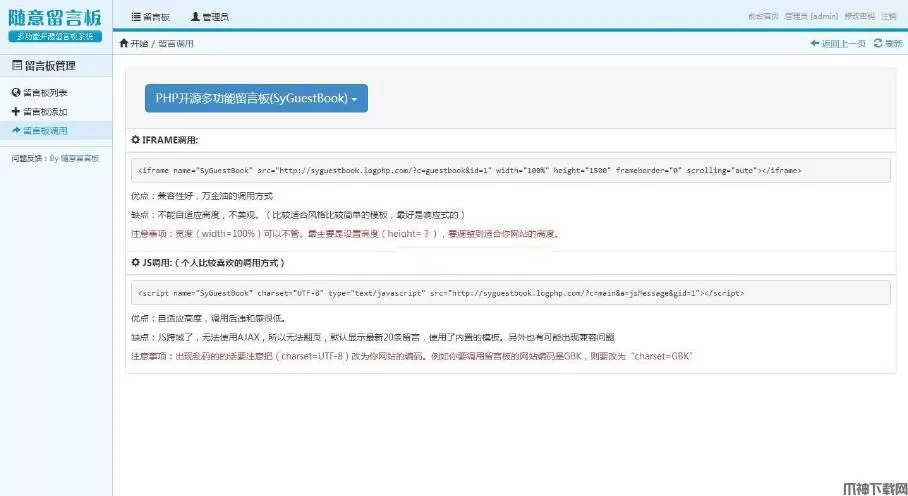 4、每个留言板都能调用。支持IFRAME调用和JS调用。