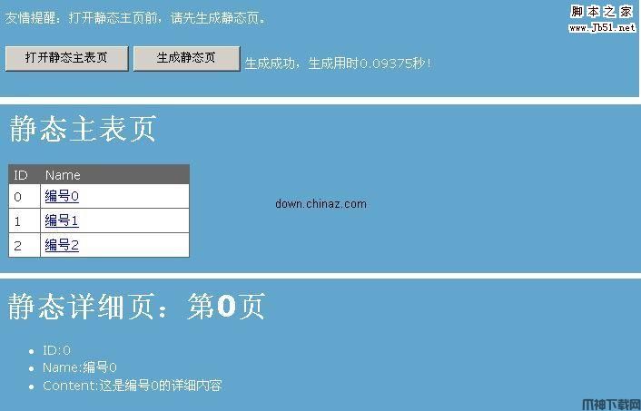 ASP.NET 生成静态页技术 v1.0 ,中小型网站模板技术(生成静态页)示例; 实现了主明细表;实现了全局标签;实现了简单的Repeat控件;