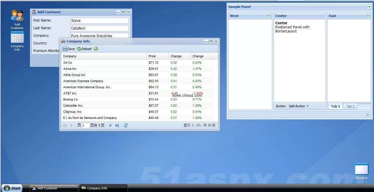 coolite 将Ext 脚本框架封装成了一系列的asp.net 控件,在保持了ext脚本框架丰富的展示效果的同时,更增加了使用的方便性。只需要拖动coolite控件到页面上,然后几步简单的设置和几段简单的脚本 。 该Demo模仿了windows开始菜单,甚至浏览器,界面非常漂亮,丰富的界面效果就呈现在屏幕上