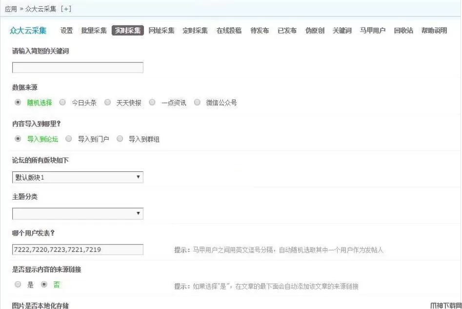 13、采集的内容可以发布到论坛的任何一个版块和门户的任何一个栏目、群组的任何一个圈子。