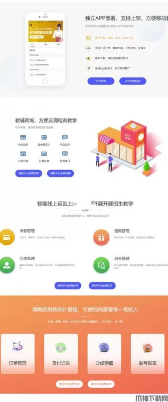 场,抢占市场先机节省硬件资金投入无需购买服务器、机柜、机房、宽带, 帮您每年节省十几万;网校终身免费升级用户体验和系统功能每周迭代更新、专业团队24小时全方位服务;开发语言:后台PHP语言 Android是Java语