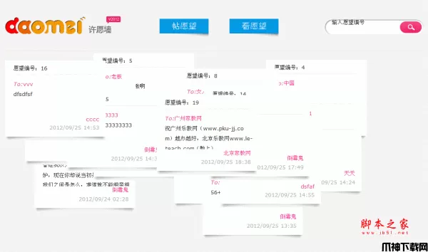 php 倒霉网许愿墙源码 2012