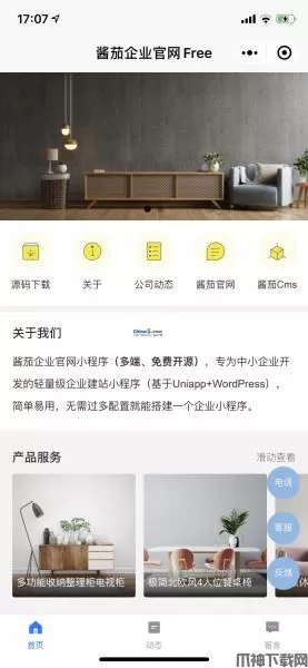酱茄企业官网Free小程序,酱茄专为中小企业开发的轻量级企业建站小程序(基于Uniapp+WordPress+php+mysql),后台操作简单,维护方便,无需过多配置就能搭建一个企业小程序。