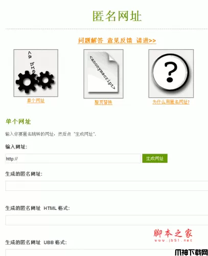 外链匿名网址程序源码 php版 v1.0 ,本程序可以单独设置一个网址,也可以在批量替换页面里的网址,可以设置包含域名/关键字的URL不用匿名,绿色小巧,简单配置。