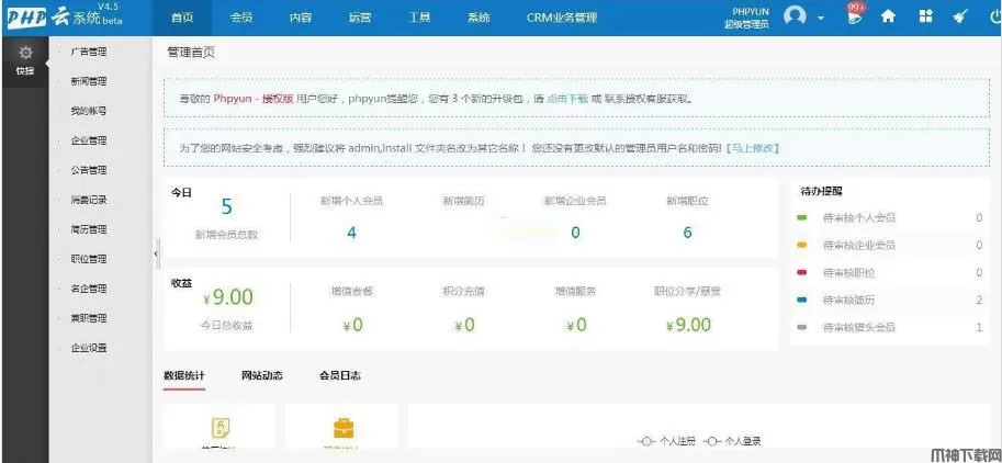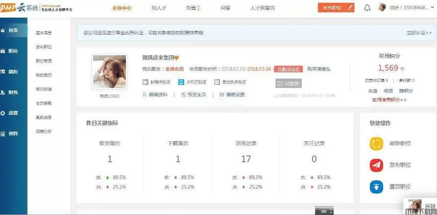 PHP云人才系统(phpyun) v6.4.2,PHPYUN人才招聘系统是一个采用 PHP 和 MySQL 数据库构建的高效开源的人才与企业求职招、聘解决方案,在尊重版权的前提下能极大的满足站长对于网站程序进行二次开发