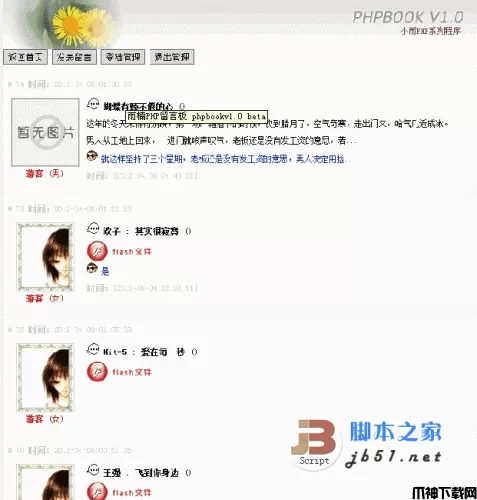 phpbook 雨楠PHP留言板 v1.0 beta ,全面使用Smarty技术,带缓存功能,PHP代码和HTML分开