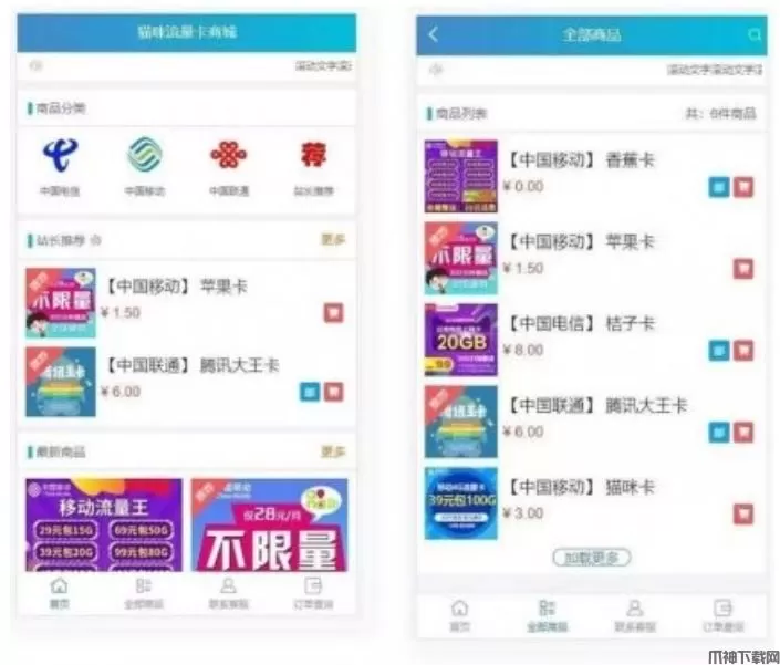 PHP实物卡售卡商城系统源码(商城源码 免登录),PHP实物卡售卡商城系统源码支持联通移动电信卡销售源码流量卡商城源码 免登录功能,喜欢的朋友快来下载体验吧
