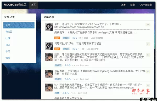 ROCBOSS微社区 php版 v2.1.0 Beta,ROCBOSS微社区是采用 PHP+MySql 架构的轻量级社区程序,使用 MVC 结构,Bootstrap 的UI,代码精简,功能实用,定制性强,任何一个初级的 PHPer 就可以对其进行二次开发
