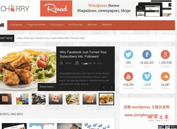 wordpress:Cherry 新闻杂志主题 v3.6.5,Cherry WordPress主题,是一个新闻、杂志WordPress主题。主题特点:自适应,拖拽首页布局,多次下拉菜单