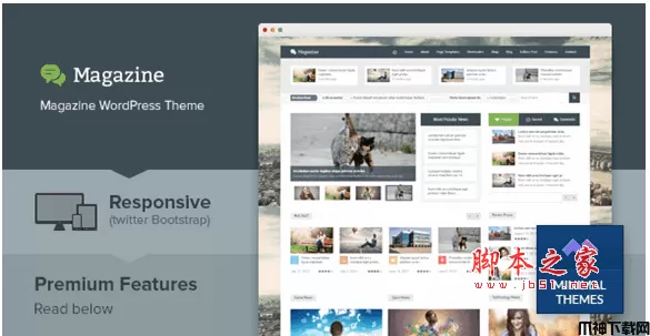 wordpress:Magazine 杂志新闻主题 php版 v1.3,Magazine wordpress主题,一个杂志WordPress主题,主题特点:自适应和视网膜支持,Bootstrap集成,AJAX搜索,无限颜色,无限谷歌字体,WooCommerce 集成,7+页面模版,8+自定义小工具