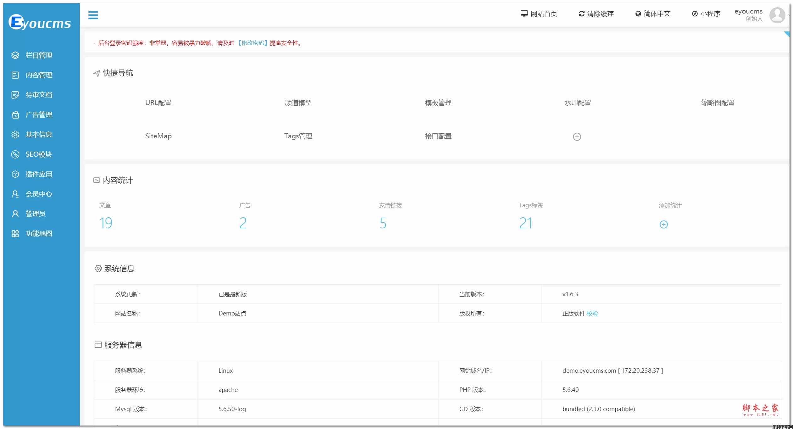 EyouCms是基于TP5.0框架为核心开发的稳定+开源的企业内容管理系统、专注企业建站用户需求提供海量各行业模板、降低中小企业网站建设、网络营销成本、致力于打造用户舒适的建站体验
