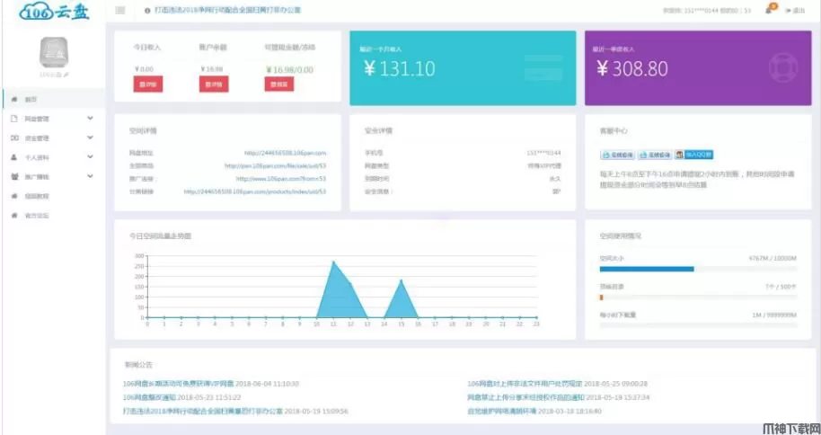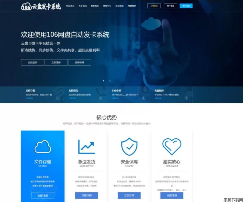 106网盘自动发卡系统 PHP版 v1.1, 106云盘自动发卡平台网盘系统支持手机端(WAP)与电脑端(PC)进行操作以及支持WAP与PC页面访问及下载操作,106网盘支持软件付费下载,实现网盘软件以及文档源码买卖,网盘用户可在手机中第一时间掌握交易动态