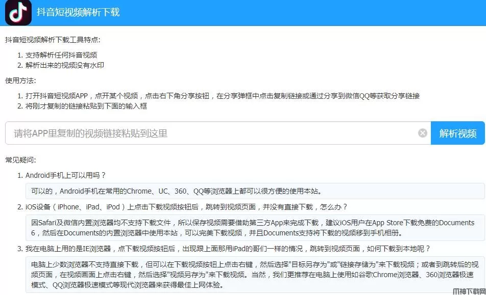 抖音短视频去水印下载PHP网站源支持解析任何抖音视频,解析出来的视频没有水印,安卓,ios及pc都可以使用,欢迎广大网友前来下载