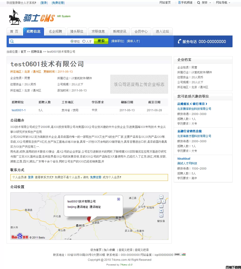 74cms 骑士人才系统php源码 v6.0.4 正式版,骑士cms人才系统是一项基于PHP+MYSQL为核心开发的一套免费 + 开源专业人才招聘系统,需要的朋友前来下载使用