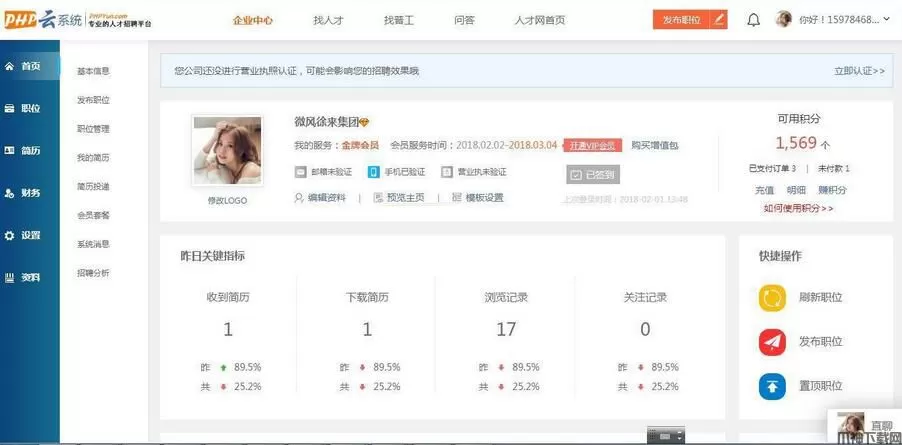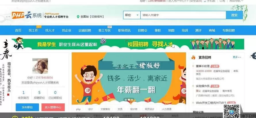 PHP云人才系统(phpyun) GBK 4.6.1 beta build190528,PHP云人才系统是一个采用 PHP 和 MySQL 数据库构建的高效开源的人才与企业求职招、聘解决方案,在尊重版权的前提下能极大的满足站长对于网站程序进行二次开发。