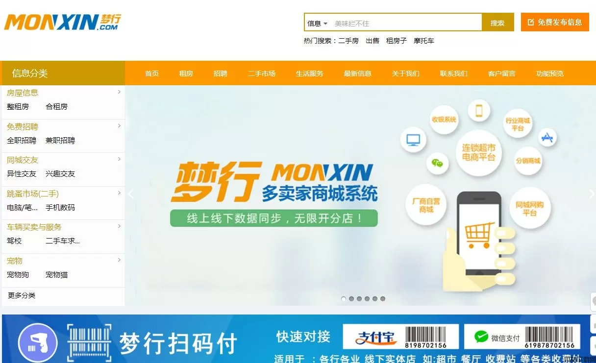 梦行Monxin分类信息系统管理 PHP版 v4.0,梦行分类信息系统是一个以PHP+MySQL进行开发的分类信息系统。欢迎下载使用