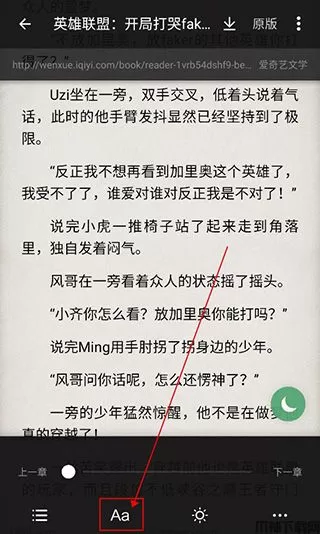 之后可以在阅读设置界面,点击下方的“Aa”,进入字体设置页面