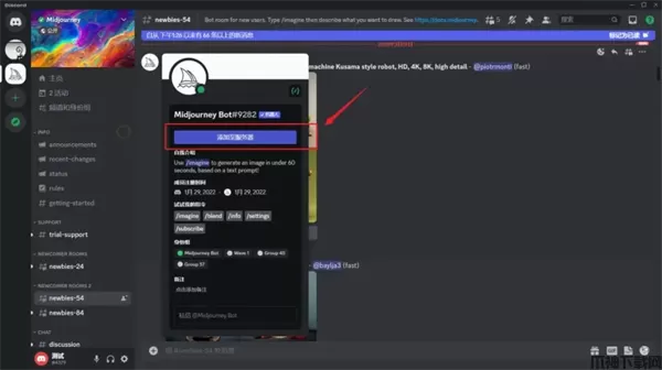 1、将midjourney服务器添加到discrod