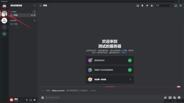 可以看到左边已经把midjourney添加成功,但是如果直接在里面生图有时候会被刷掉,所以下面我们来建立一个自己的单独服务器。
