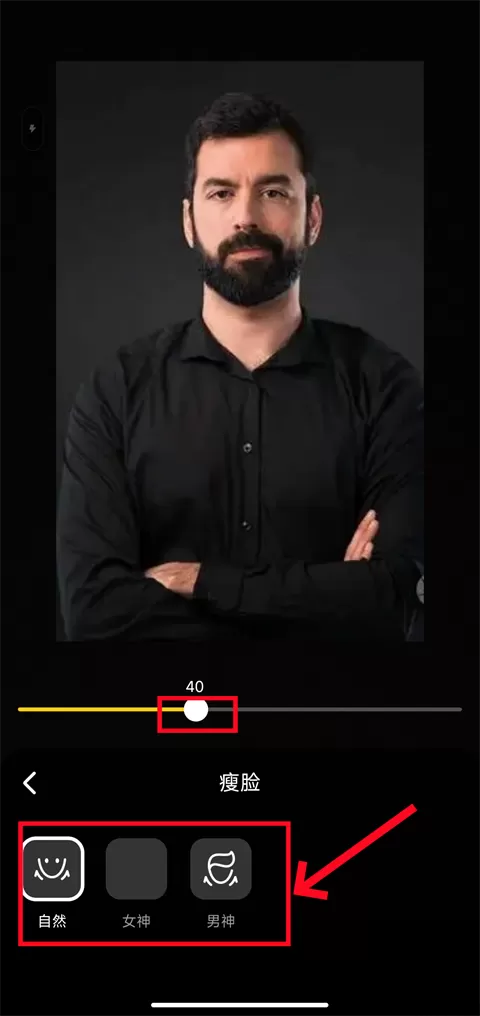 5、接下来是瘦脸,因为每个友友的脸型都不一样,这里有女神和男神的选择,可以根据自己的脸型来调整