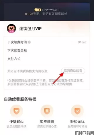 5、点击 “取消自动续费”